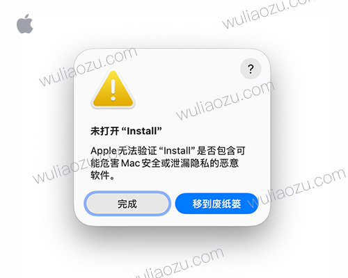 - Apple无法验证“Install”是否包含可能危害Mac安全或泄漏隐私的恶意软件 移到废纸篓
